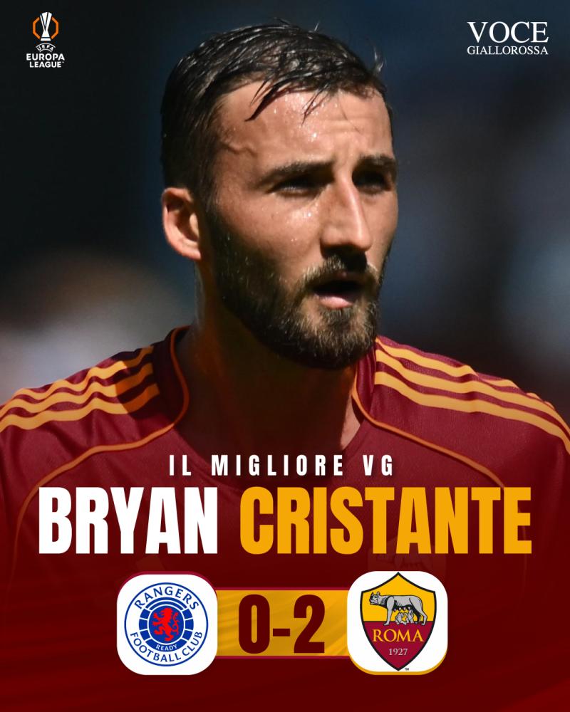 Una bella vittoria per ripartire dopo la sconfitta di Milano. La Roma si impone in casa dei Rangers e torna a vincere in Europa League, dopo i due k.o. di fila in casa contro Lille e Viktoria Plzen. Decidono i gol di Soulé e Pellegrini. Eppure il vostro migliore in campo è stato un altro. Bryan Cristante è stato infatti eletto come #IlMiglioreVG del match attraverso i canali social di Vocegiallorossa.it: X, Instagram, Facebook e Threads. Per Cristante si tratta del primo riconoscimento stagionale.