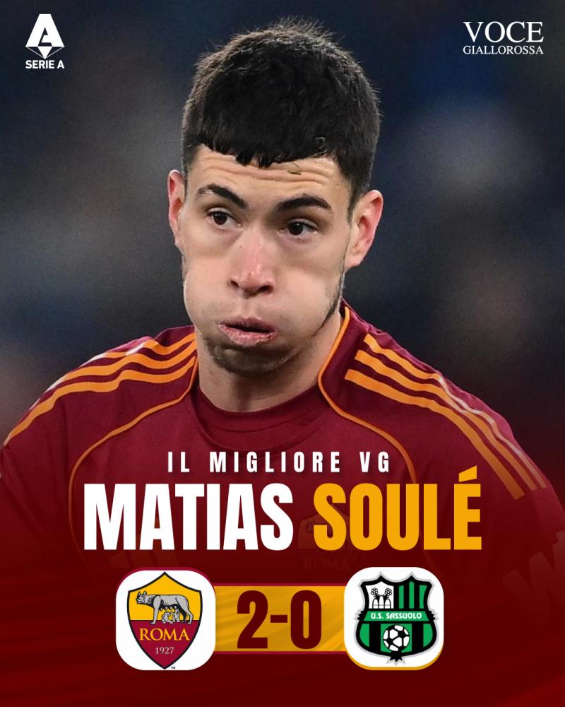 Dopo la vittoria di Lecce, la Roma batte anche il Sassuolo e conquista tre punti molto importanti grazie ai gol di Koné e Soulé. Proprio l'argentino è stato nominato #IlMiglioreVG dai nostri lettori attraverso le votazioni avvenute sui canali social di Vocegiallorossa.it.