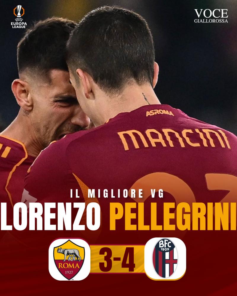 La Roma cade ancora dopo gli ultimi deludenti risultati in campionato e saluta l'Europa League agli ottavi di finale per mano del Bologna, in un pirotecnico e amaro 3-4 ai supplementari. Protagonista della sfida, nonostante la sconfitta, Lorenzo Pellegrini. Entrato al posto dell'infortunato Koné, ha prima creato il gol di Ndicka e poi illuso con la perla del momentaneo 3-3. È lui #IlMiglioreVG dai nostri lettori attraverso le votazioni avvenute sui canali social di Vocegiallorossa.it. Per Pellegrini, si tratta del secondo riconoscimento stagionale.